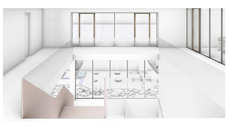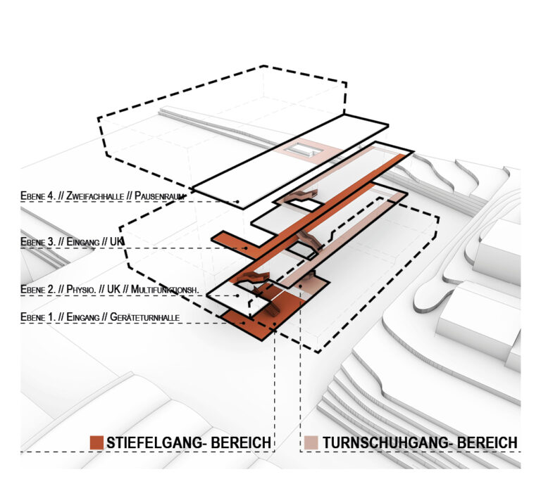 Kommunikation im Raum // Blick aus Richtung Geräteturnhalle Ebene 1.