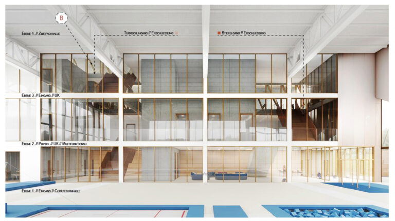 Mit dem Neubau von zwei Sporthallen, einer Multifunktionshalle, modernen Athletik- und Krafträumen sowie großzügigen Physiobereichen entsteht am SPORTCAMPUS SAAR in Saarbrücken ein zukunftsweisendes Zentrum für Leistungssport, Nachwuchsförderung und Breitensport im Saarland. Das Projekt ist weit mehr als eine klassische Sportstätte: Es ist ein Ort, an dem Training, Konzentration und Gemeinschaft zusammenkommen – eingebettet zwischen Campus, Sportplätzen und Grünflächen. Als Ergänzung des Olympia- & Leistungsstützpunkt des Landessportverbandes Saarland setzt der Standort ein starkes Zeichen für die sportliche Entwicklung der Region.