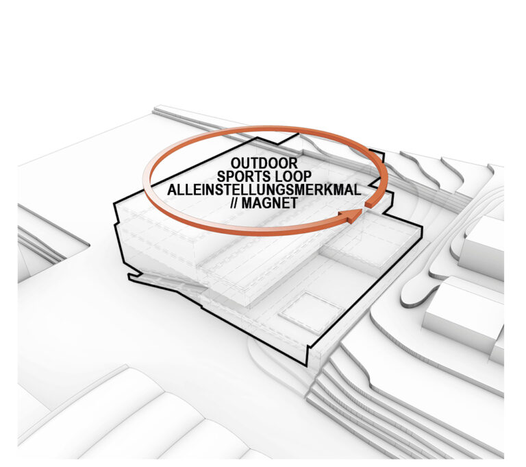 Der Loop richtet sich gleichermaßen an Leistungs- wie an Freizeitsportlerinnen und -sportler. Er ergänzt die zwei Sporthallen, die Multifunktionshalle, die Athletik- und Krafträume sowie die Physiobereiche zu einem zusammenhängenden Bewegungs- und Trainingssystem und macht den Campus zu einem offenen, lebendigen Sportort.