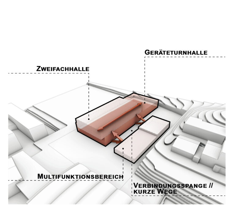 Funktionsanordnung // kurze Wege // optionale Umnutzung der Geräteturnhalle, auf Grund der Gebäudetiefe // Wirtschaftlich - kein „Eingraben“ // Nachhaltigkeit