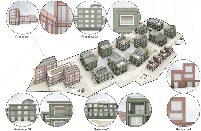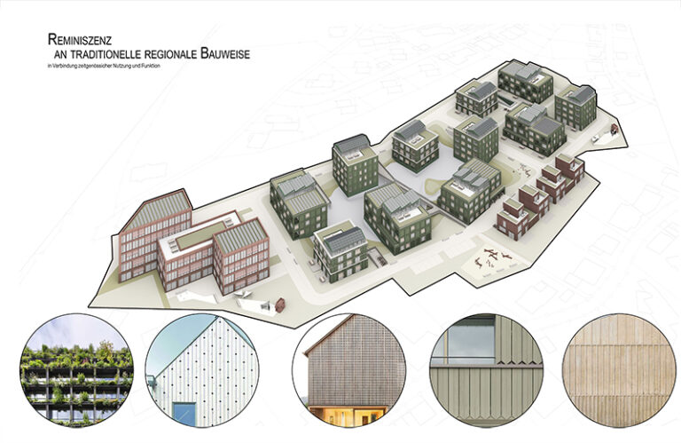 Nachhaltigkeit wird hier nicht nur technisch verstanden, sondern auch räumlich und städtebaulich: durch kurze Wege, die Mischung von Wohnen und Arbeiten, qualitätsvolle Freiräume sowie durch eine Architektur, die Dauerhaftigkeit, Anpassungsfähigkeit und regionale Identität miteinander verbindet. So entsteht ein Quartier, das ökologische, funktionale und gestalterische Aspekte zu einem zukunftsorientierten Gesamtbild zusammenführt.